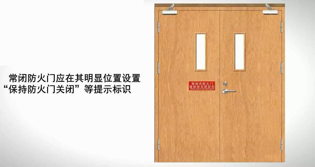3、常閉防火門應(yīng)在其明顯位置設(shè)置“保持防火門關(guān)閉”等提示標(biāo)識(shí)