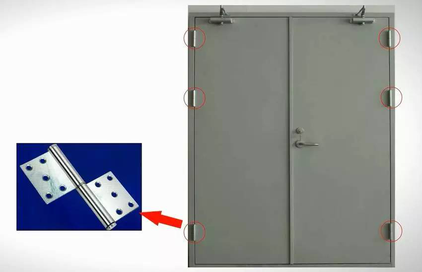 防火門用合頁(鉸鏈)板厚應(yīng)不少于3mm。