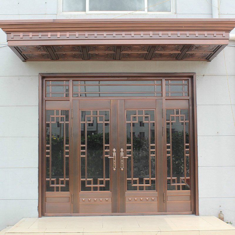雨棚四開玻璃銅門